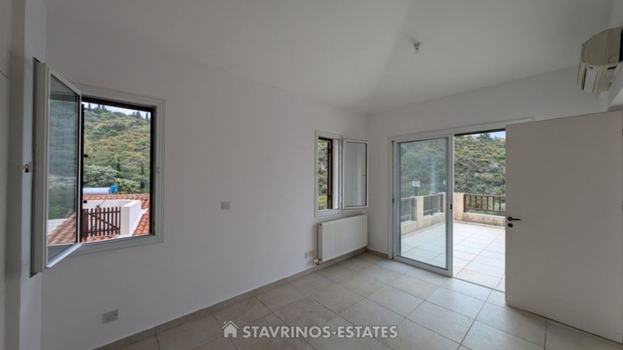 Δεύτερος όροφος: Κυρίως υπνοδωμάτιο με ιδιωτικό μπάνιο και πρόσβαση σε μεγάλη ακάλυπτη βεράντα.