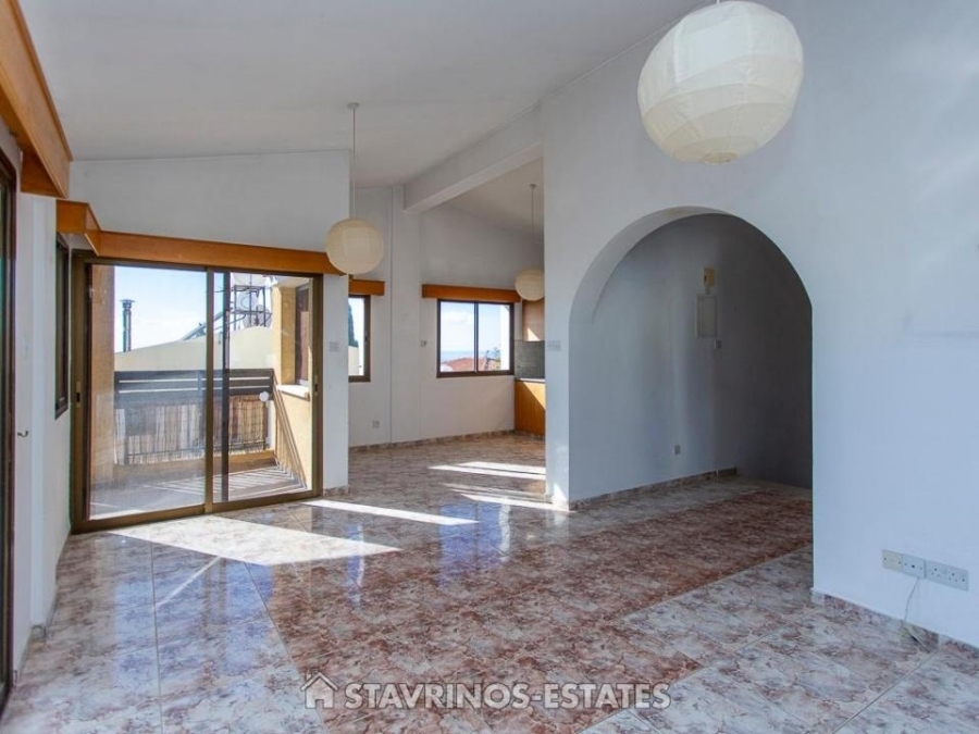 Το σπίτι στην Πέγεια, Πάφος, Κύπρος λόγω υψομετρικής διαφοράς έχει πρόσβαση από τον όροφο, ο οποίος αποτελείται από καθιστικό, τραπεζαρία, κουζίνα, αποχωρητήριο ξένων και βεράντες.