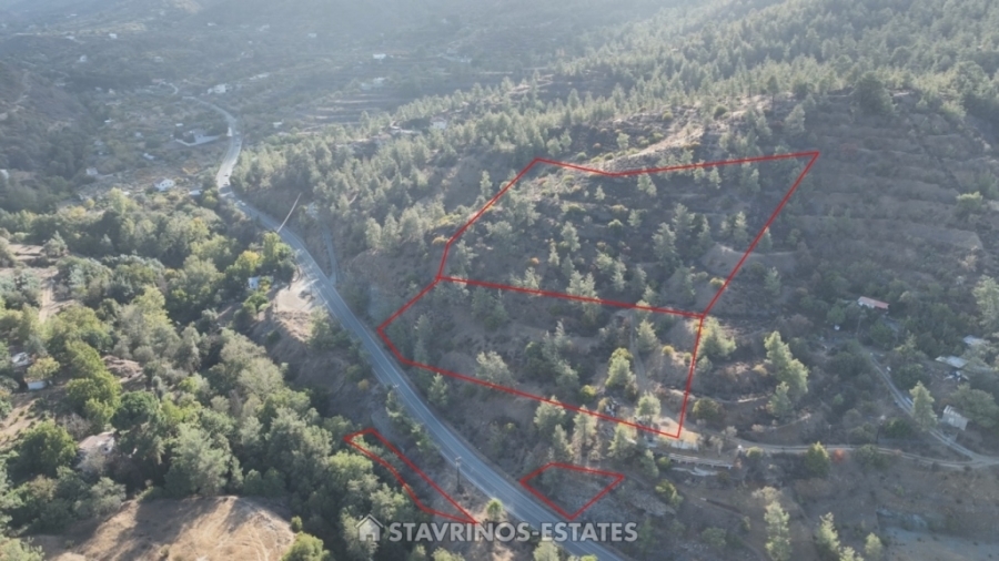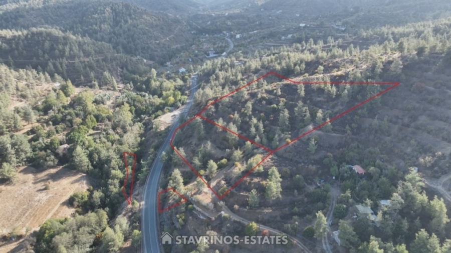 The four plots are located in the "Kakoskalin" area, within the community of Paliochori Oreinis, in the Nicosia District. They are adjacent to each other and situated approximately 1.8 kilometers southeast of the center of the village of Agios Epiphanios Oreinis. Most of them have direct frontage onto the main Nicosia-Paliochori road, providing good accessibility. The wider area is characterized by sparse development (few houses and restaurants) and expanses of pine trees.
